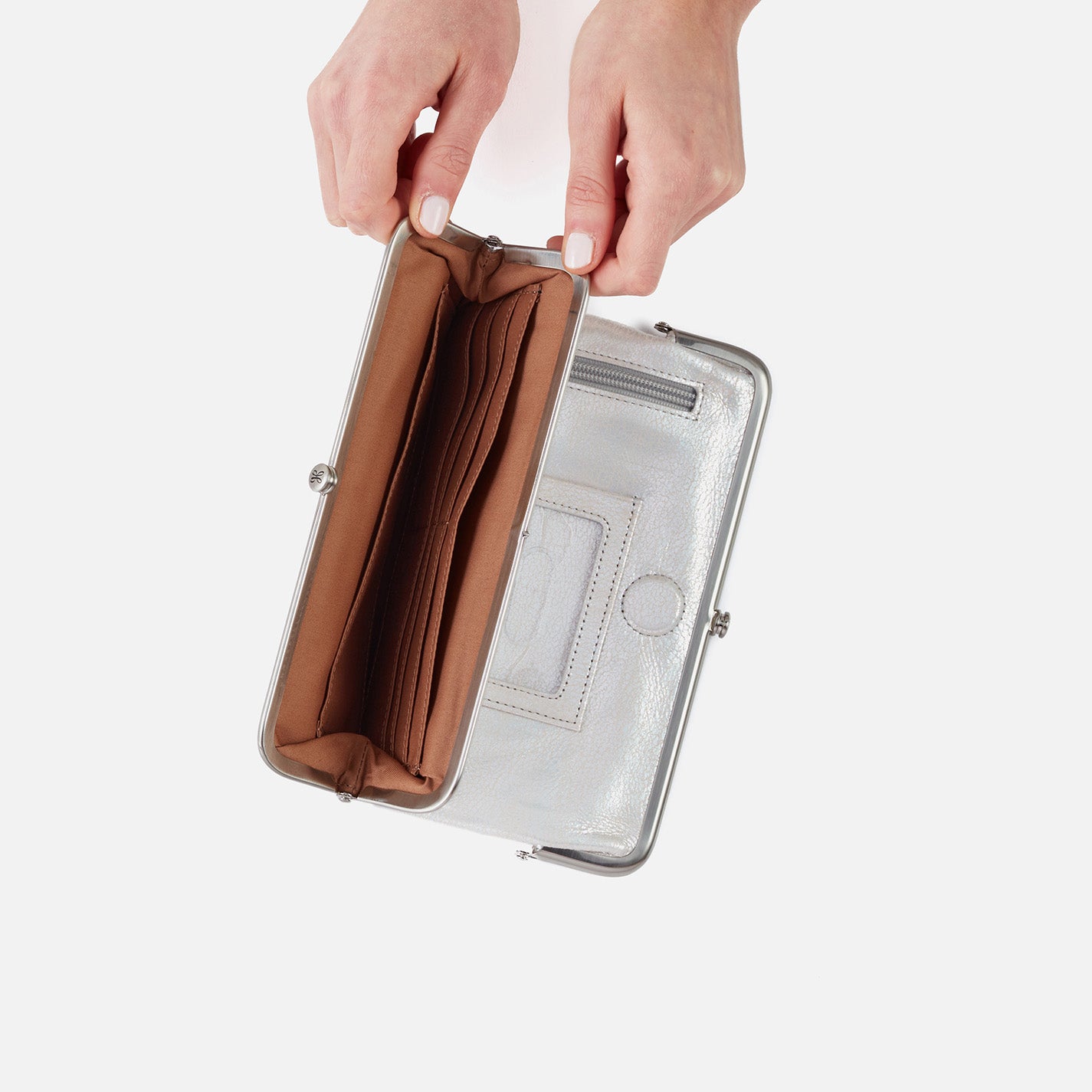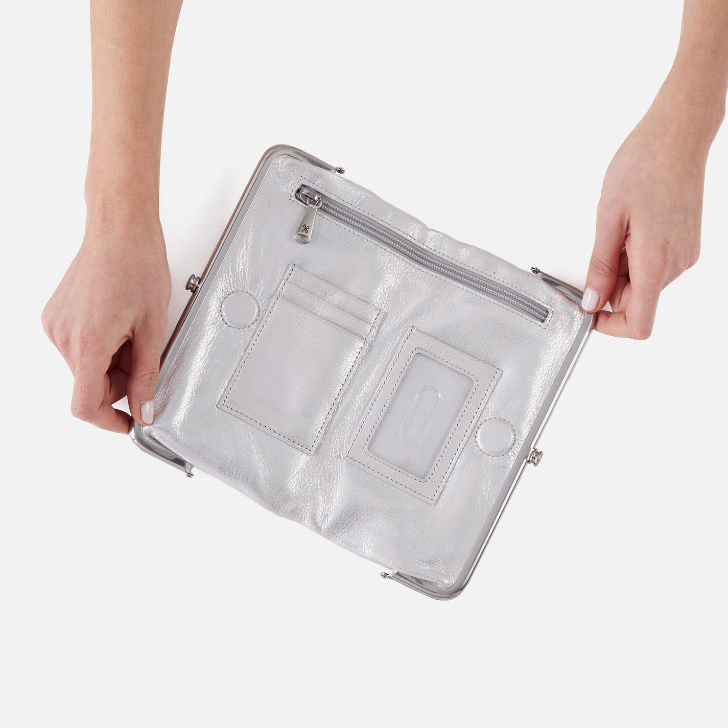 Lauren Clutch-Wallet in Metallic Leather – Silver
