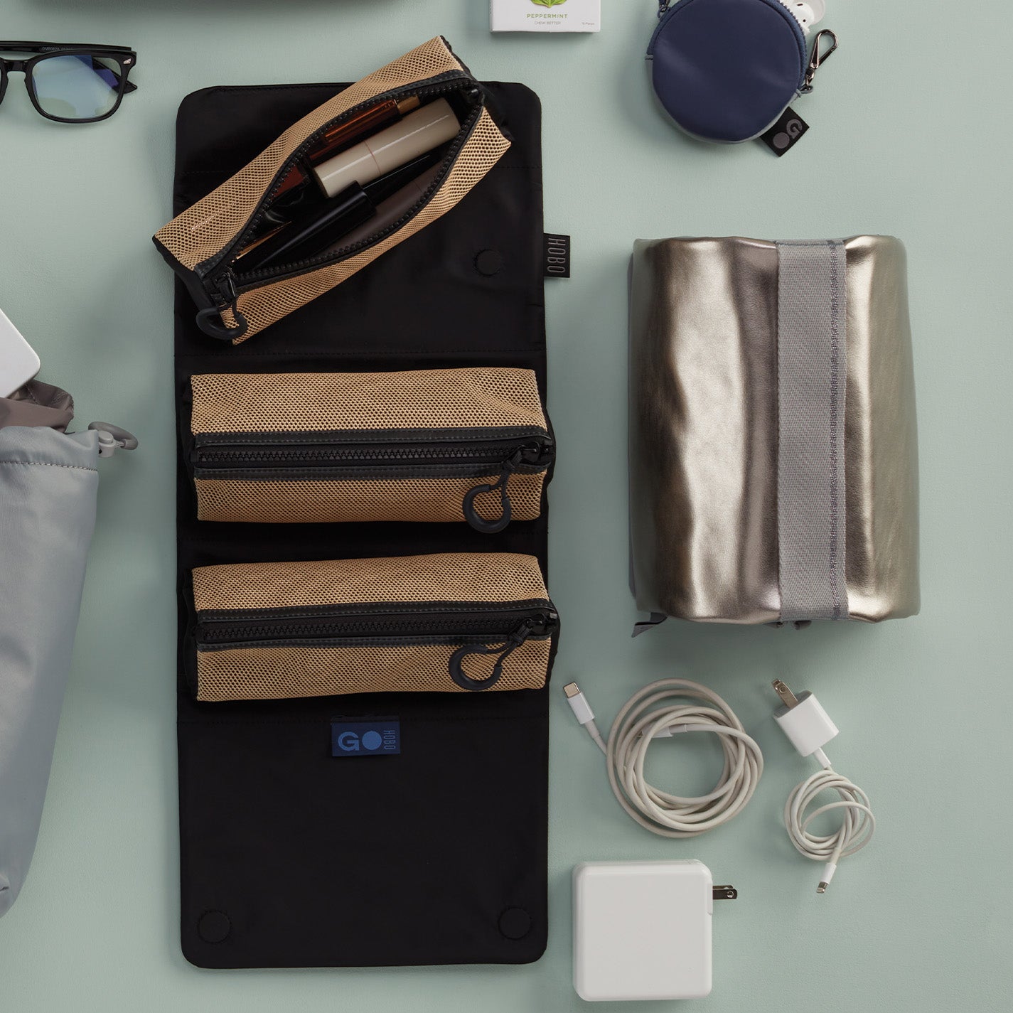 NGL: Not gonna lie. there’s something special about this triple-pouch. transforming kit. Configure it. roll it—this kit bends to your will and the demands of your day. Pack cables. combs. or clips. with modular magic. Grab the wide carry-handle and carry on.
