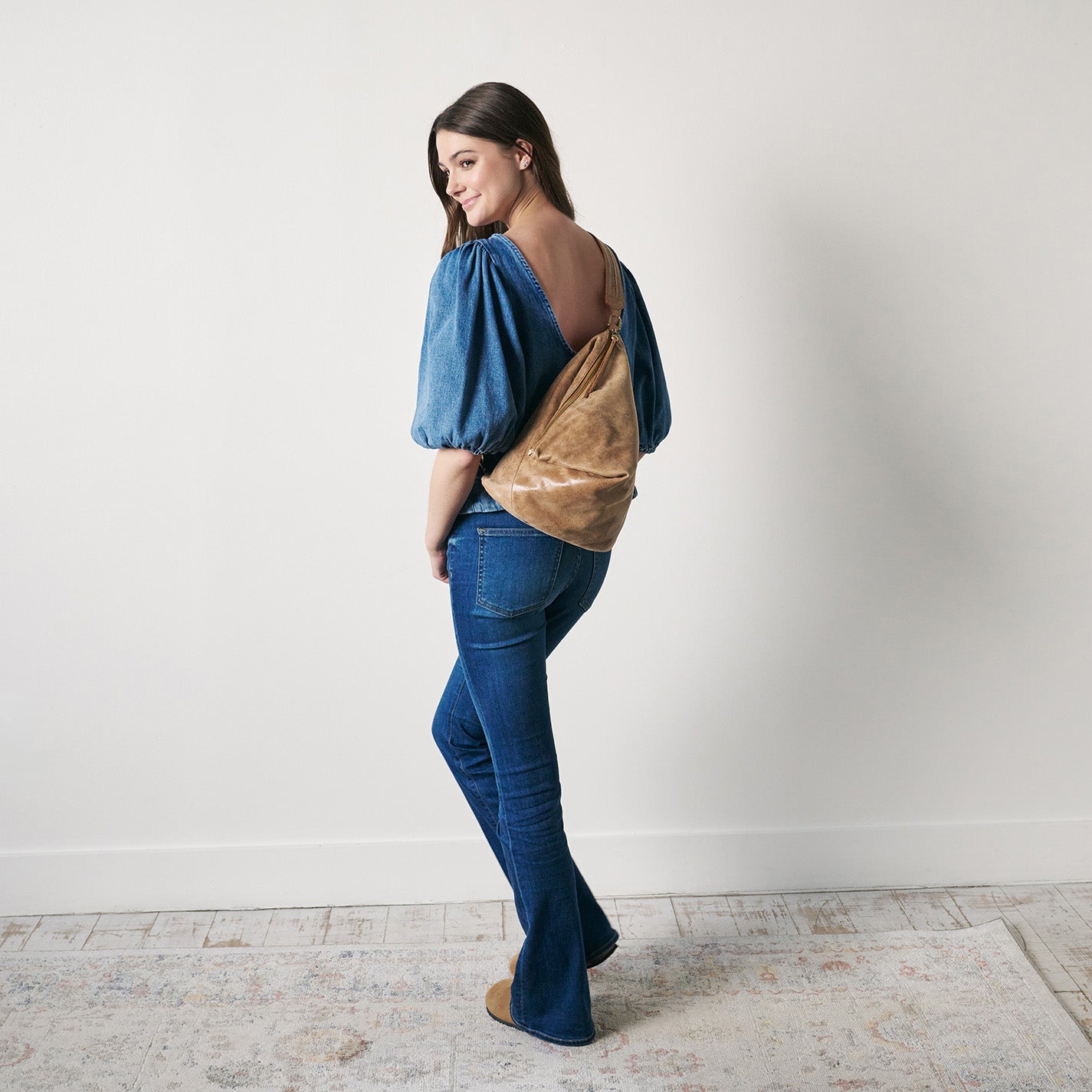 Soft and slouchy. plus two looks in one! This sling will be your new go-to bag.